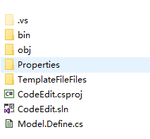 点击工具栏 铵钮进行会自动生成VS项目,并打开项目编辑模板。 微软Visaul Studio具体很好的代码提示功能,本代码生成器和Visaul Studio紧密结合,利用Visaul Studio代码提示功能,方便您的使用。 项目目录如: